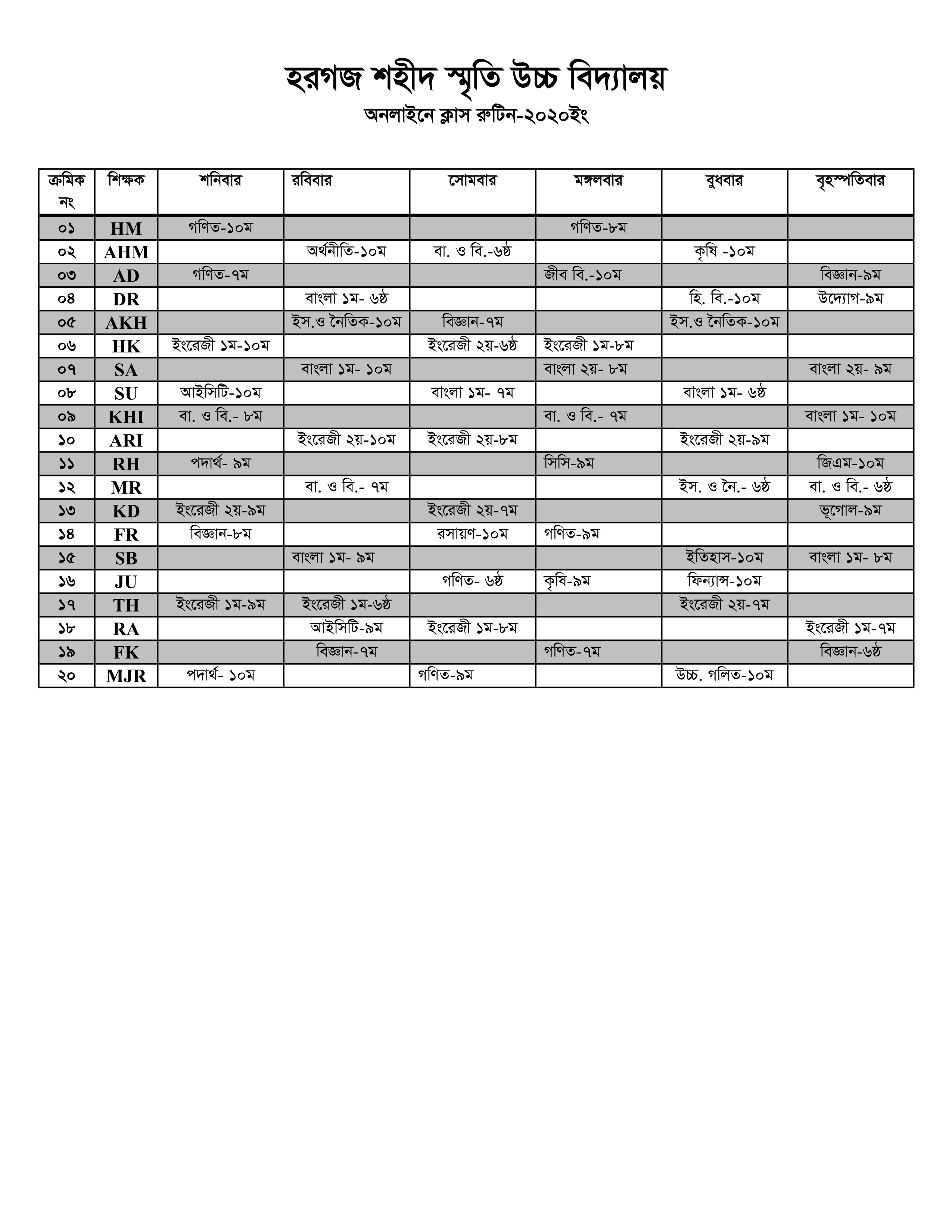 হরগজ শহীদ স্মৃতি উচ্চ বিদ্যালয়ে অনলাইনে ক্লাস গ্রহণের রুটিন প্রকাশিত হয়েছে।