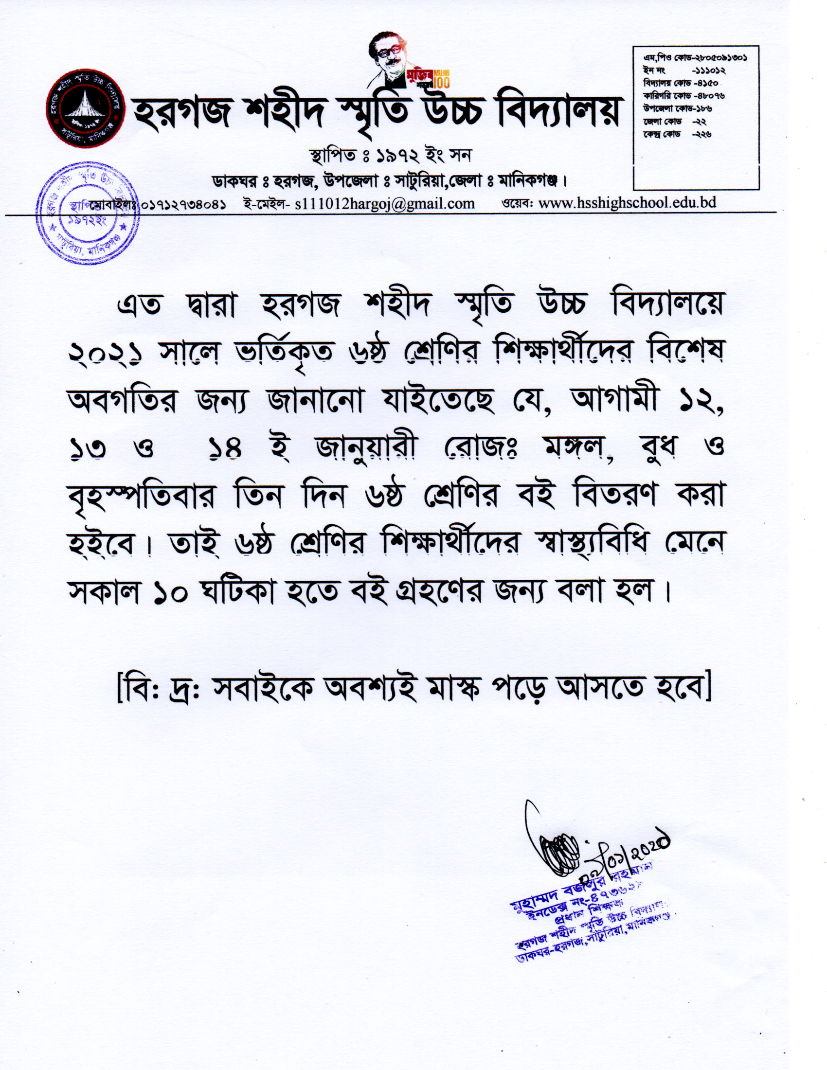 ডাকঘর: হরগজ, উপজেলা: সাটুরিয়া, জেলা: মানিকগঞ্জ